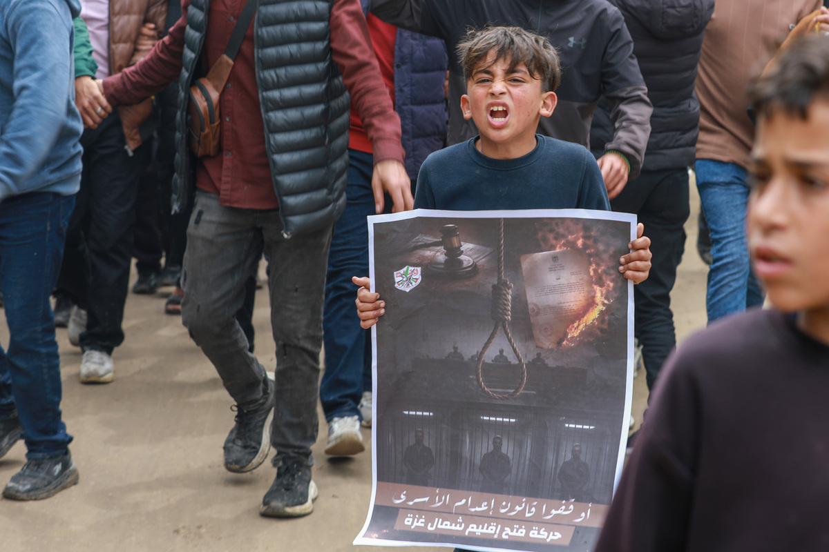 A large number of people, including community leaders, dignitaries, and prisoners’ families, gathered on Wednesday in the Bureij refugee camp in central Gaza to condemn Israel’s approval of a law allowing the execution of Palestinian prisoners, Anadolu reports. The rally took place after Israel’s parliament, or Knesset, passed legislation that enraged not only international leaders and human rights organizations but also Gazans, who turned out in large numbers to protest what they described as “racist legislation.” Participants held up photos of prisoners and banners stressing that harming them is a “red line,” and urged immediate global action to prevent the law from being implemented. Ali al-Shashniya, spokesperson for tribes and popular committees in Bureij, told Anadolu that the protest aimed