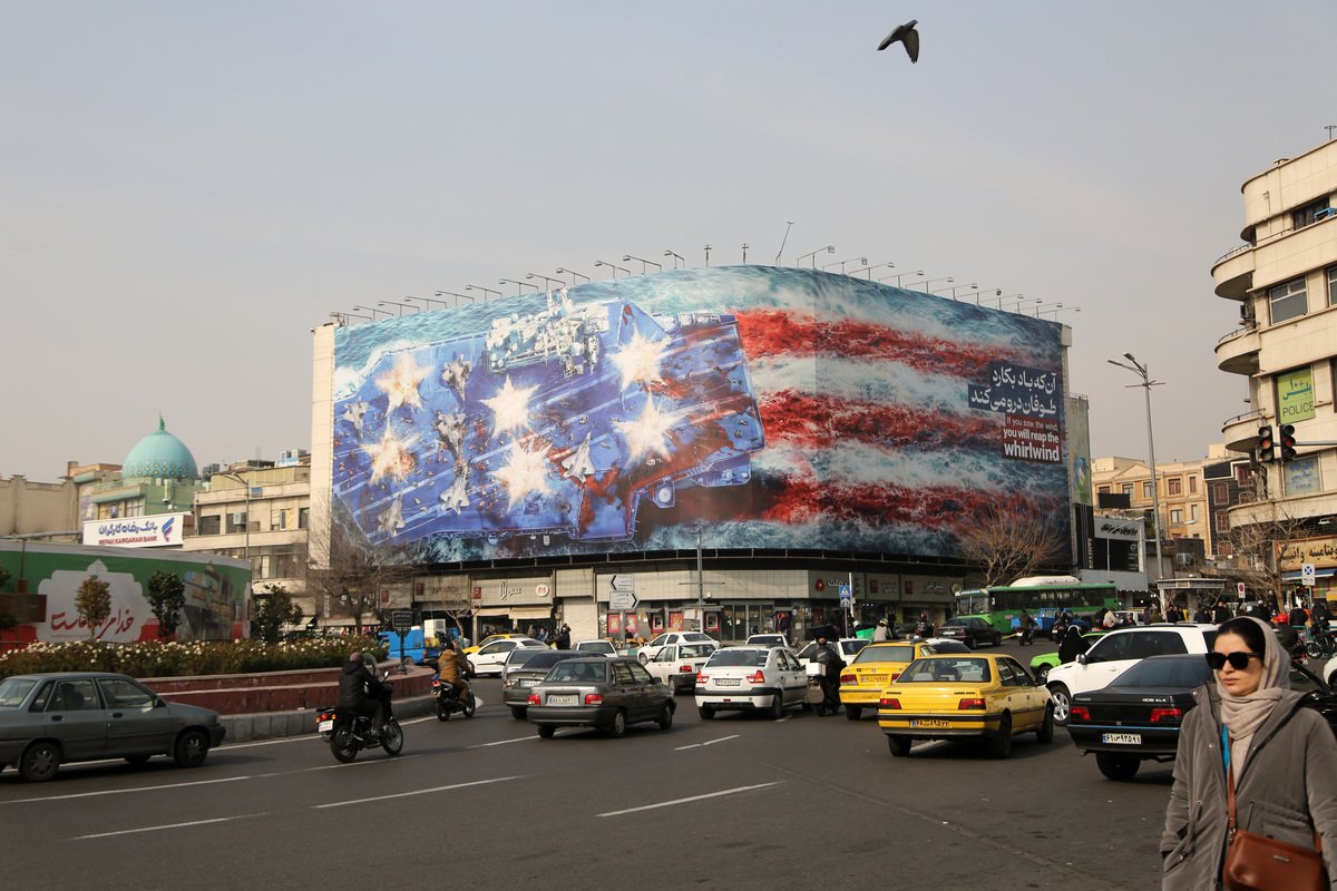 ![A giant banner depicting a U.S. aircraft carrier and the American flag was displayed at Enqelab (Revolution) Square in Tehran, Iran amid rising tensions between the United States and Iran on January 25, 2026. [Fatemeh Bahrami - Anadolu Agency]](https://www.middleeastmonitor.com/wp-content/uploads/2026/02/AA-20260125-40361079-40361075-ANTIUS_BANNER_DISPLAYED_IN_TEHRAN_AMID_RISING_USIRAN_TENSIONS-1.jpg)