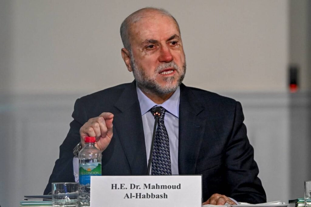 Mahmoud Al-Habbash, advisor to the Palestinian President Mahmoud Abbas, speaks during the 19th International Muslim Forum at the Moscow Central Mosque in Moscow, Russia on December 12, 2023. [Sefa Karacan/Anadolu via Getty Images]