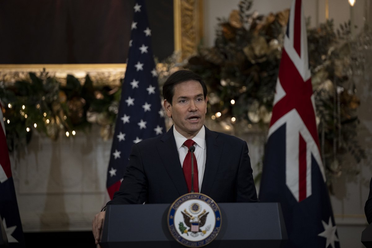 US Secretaries of State and Defense Marco Rubio gives a speech at the State Department in Washington DC, United States on December 8, 2025. [Celal Güneş - Anadolu Agency]