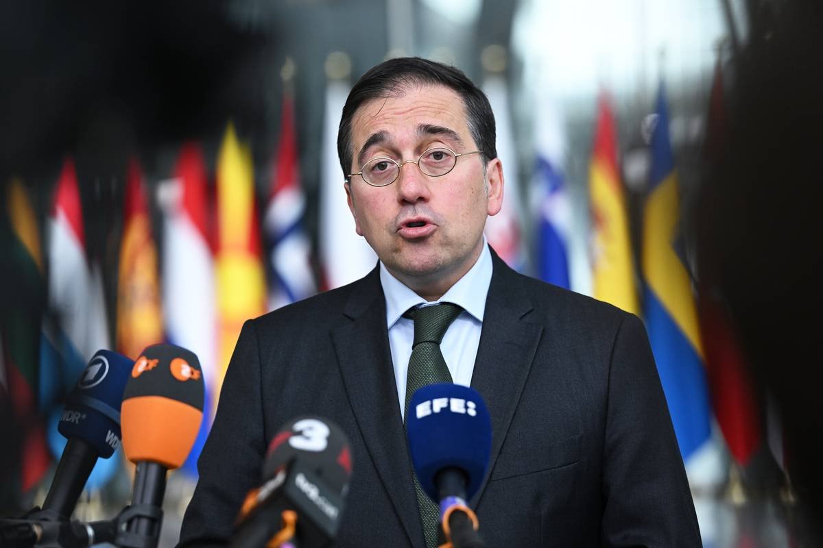 Spanish Foreign Minister Jose Manuel Albares speaks to press on the first day of NATO foreign ministers meeting at NATO Headquarters in Brussels, Belgium on April 03, 2024 [Dursun Aydemir - Anadolu Agency]
