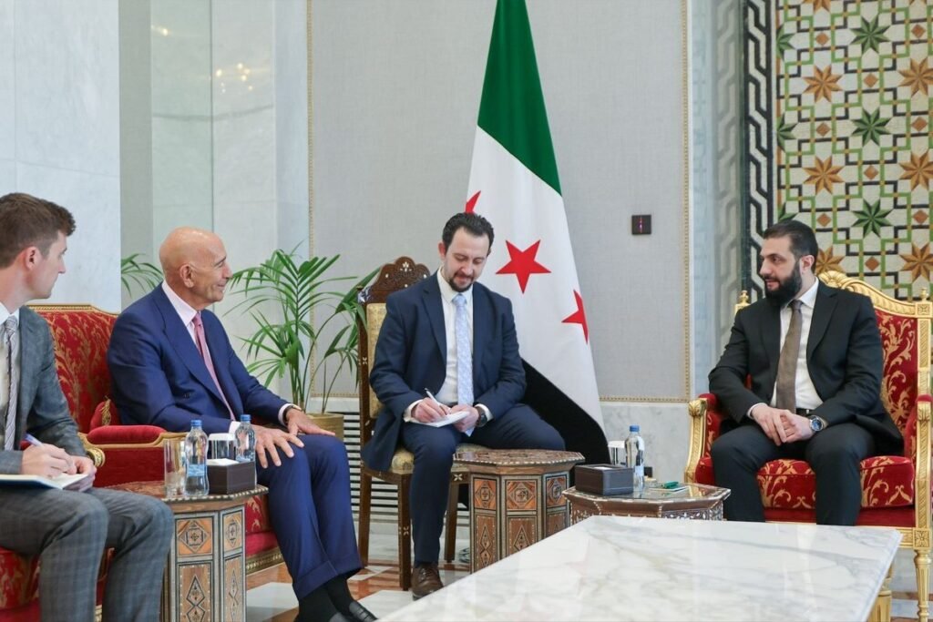 Syrian President Ahmad al-Sharaa met Wednesday in Damascus with a US delegation led by special envoy Tom Barrack to discuss recent regional developments and issues of mutual interest, the presidency said, Anadolu reports. The meeting took place at the People’s Palace in the capital and was attended by Syrian Foreign Minister Asaad al-Shaibani, it added in a statement. The statement did not provide further details on the agenda or outcomes of the talks. Earlier, Barrack said that Syria “continues to impress with its social fabric vertically and horizontally, under the leadership of Sharaa,” according to Alikhbariah TV. READ: Syria signs MoU with Chevron, Qatari firm to explore oil, gas offshore His comments came during the signing of a memorandum of understanding […]