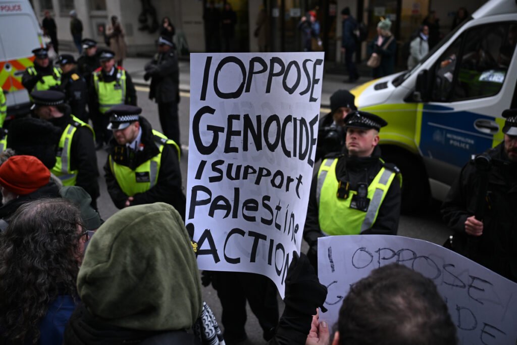 ![Police detain demonstrators as activists gather outside the Ministry of Justice during the “Lift the Ban” protest launched by the Defend Our Juries campaign group ahead of the judicial review on the designation of Palestine Action as a terrorist organization in London, United Kingdom, on November 20, 2025. [Raşid Necati Aslım - Anadolu Agency]](https://www.middleeastmonitor.com/wp-content/uploads/2025/11/AA-20251120-39762001-39761967-POLICE_DETAIN_ACTIVISTS_AT_LIFT_THE_BAN_PROTEST_IN_LONDON____-1.jpg)
