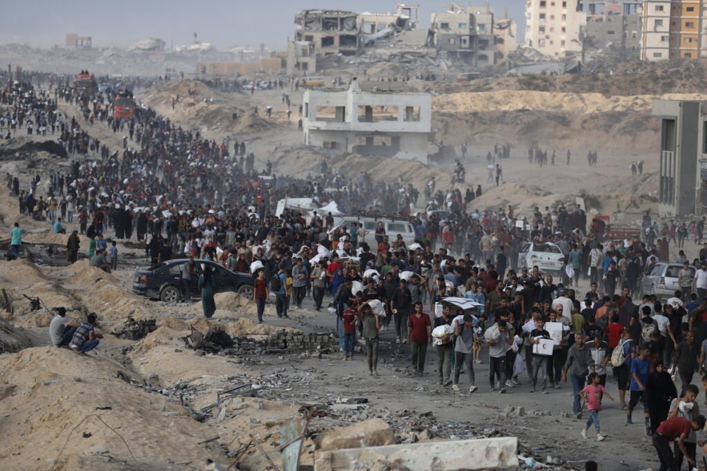 Thousands of Palestinians struggling with hunger gather in the Zakim area in northern Gaza to receive humanitarian aid in Gaza City, Gaza, on June 22, 2025. [Khames Alrefi - Anadolu Agency]